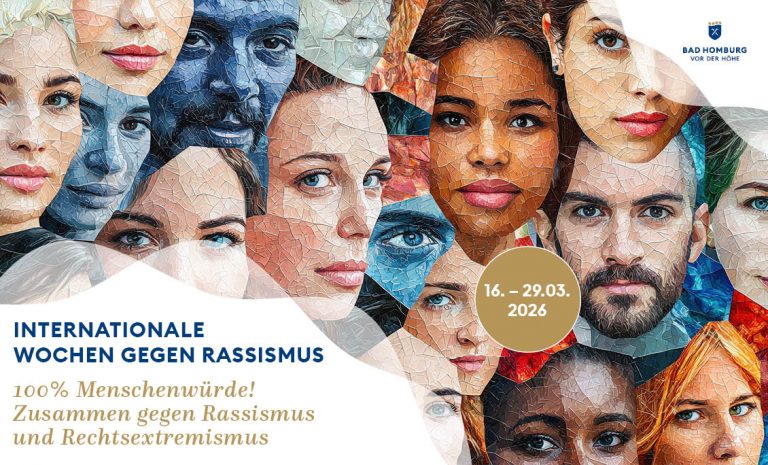 Bad Homburg v. d. Höhe (ut). Am morgigen Samstag, 14. März 2026, starten in Bad Homburg wieder die Internationalen Wochen gegen Rassismus. Die bundesweite Aktionsreihe findet jährlich in vielen Städten und Kommunen statt und steht unter dem Motto: „100% Menschenwürde! Zusammen gegen Rassismus und Rechtsextremismus“.