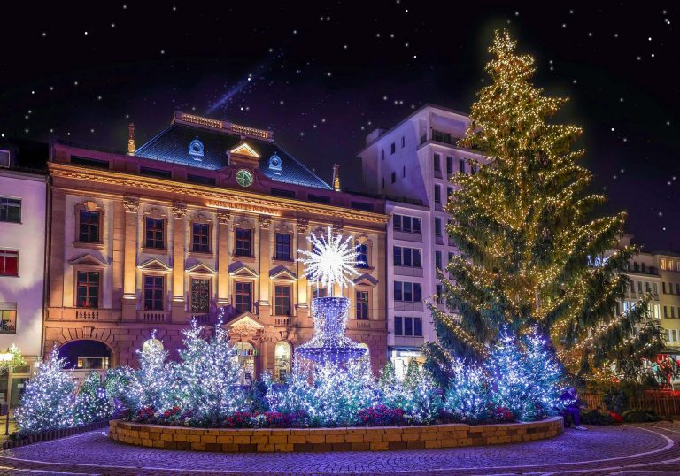 Bereits seit 2016 stellt die Stadt ihre Festbeleuchtung sukzessive auf LED-Technik um. Neue Elemente wie die „Snowball“-Lichtelemente am Waisenhausplatz oder die Hüttenbeleuchtung unterstreichen den Anspruch an Nachhaltigkeit: fair produziert, wetterfest und besonders energieeffizient. Ergänzt wird das Ensemble durch den funkelnden Weihnachtswald am Kurhausplatz mit rund 40 Tannenbäumen.