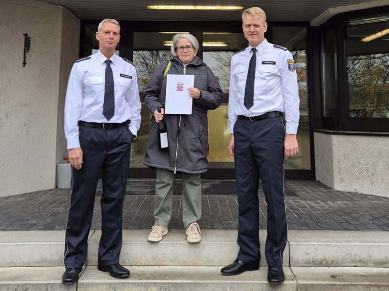 Eltville am Rhein (ut). Am vergangenen Freitag wurde Anke Berlinger, Mitarbeiterin einer Bankfiliale in Eltville, vom Leiter der dortigen Polizeistation, Volker Freiding, und dessen Stellvertreter, Robert Krallmann für ihr vorbildliches Handeln belobigt. Ihr ist es zu verdanken, dass einem Senior kein erheblicher finanzieller Schaden entstanden ist.