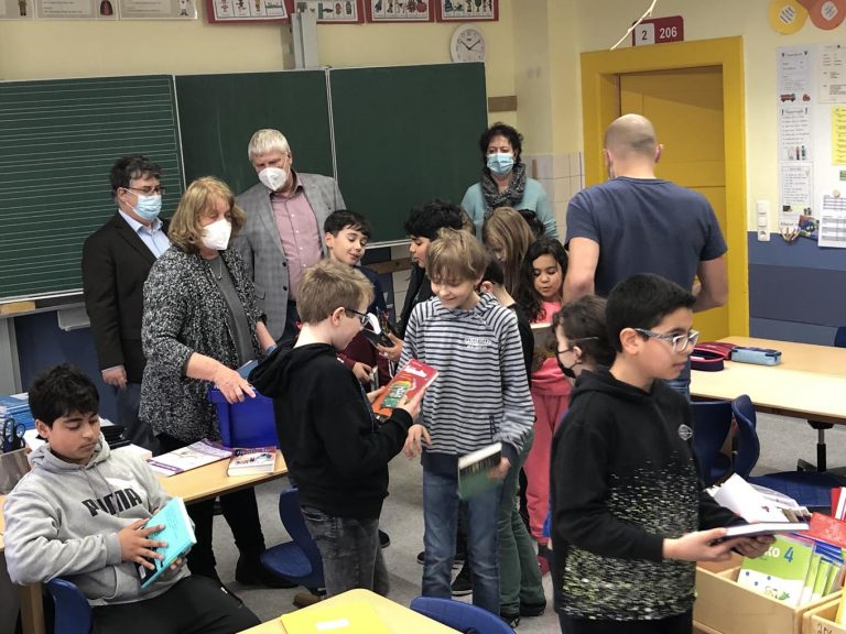 Die erste Kiste haben Wolfgang Exner, Erster Stadtrat, und Axel Pabst von den Lions in der Pestalozzi-Schule übergeben. „Lesen ist keine Nebensache“, so Exner und erläutert: „Wer liest, nimmt die Perspektive anderer Menschen ein. Das ist wichtig für unser Miteinander.“ Pabst bedankte sich besonders bei Ikea Wallau, dessen Spende den Kauf mehrerer Bücherkisten ermöglicht hatte.