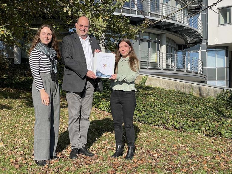 Lisa Lauf, Leiterin Stabsstelle Mobilität, Klimaschutz, nachhaltige Kreisentwicklung und Umweltbildung, Erster Kreisbeigeordneter Thorsten Schorr und Klimaschutzmanagerin Nelly Reckhaus präsentieren das Klimaschutzkonzept des Hochtaunuskreises. - Foto: HTK-Pressestelle