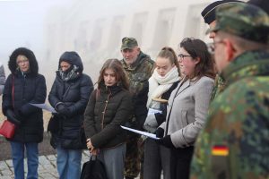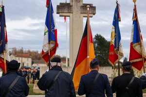 Zeuge der Offenheit und Herzlichkeit, mit welcher „ihre“ Reservisten in Verdun aufgenommen werden, ist die Delegation ebenso am nächsten Tag. Sie erlebt erneut „Deutsche und Franzosen Hand in Hand, Fahne neben Fahne friedlich miteinander gedenkend“ bei der Teilnahme an der Gedenkzeremonie für die sieben unbekannten Soldaten. Acht waren es ursprünglich, deren Überreste 1920 in die Stadt aus den verschiedenen Kampfgebieten in Frankreich gebracht wurden, um einen unter ihnen für die Beisetzung unterhalb des Triumphbogens in Paris auszuwählen. Als Fahnenträger der Deutschlandfahne sieht die Delegation nun Dirk Liekmeier in gemeinsamer Reihe mit dem Ehrenzug, inmitten der französischen Veteranen mit ihren Standarten stehen. Nicht nur für Dirk Liekmeier, Sylvia Bögner-Beraud und Monika Gröbler-Seidenather sind das bedeutende Momente. Benedikt von Schorlemer spricht später von der „Kraft der Versöhnung, die aus der Begegnung von Menschen entsteht“.