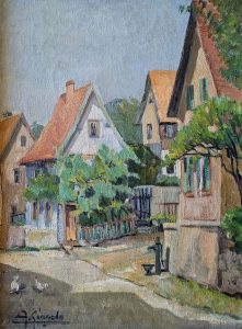 Die Nachfrage nach ihren Arbeiten stieg rasch, denn viele Kelkheimer hätten gerne ein Ölgemälde ihrer Heimat an der Wand gehabt. Dass die nötigen Materialien überhaupt verfügbar waren, grenzt rückblickend an ein Wunder – Leinwände, Farben, Pinsel oder Terpentin waren im Krieg kaum zu bekommen. Dennoch entstanden zahlreiche Auftragsarbeiten, darunter sogar Kopien berühmter großformatiger Werke wie Rubens’ „Raub der Töchter des Leukippos“ oder Vermeers „Bei der Kupplerin“, die von Aurélio Gianola geschaffen wurden.