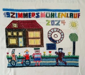 Das diesjährige Laufshirt wurde von der Mitarbeiterin der Werkstätten, Beate Stenger, entworfen und aus rund 30 Motiven ausgewählt. Das Motiv wurde aufwendig gestickt und ist ein echter Hingucker! „Es ist eine große Freude, das diesjährige Laufshirt gemeinsam mit unserer Mitarbeiterin Beate Stenger zu präsentieren. Ihr Design verkörpert den Geist des Zimmersmühlenlaufs – Inklusion und Gemeinschaft,“ so Andreas Knoche, Erster Betriebsleiter der Oberurseler Werkstätten.