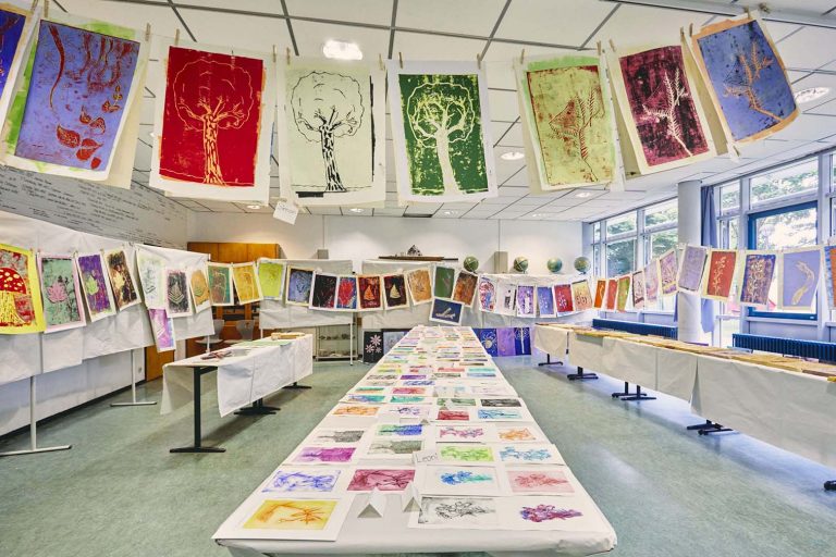 Ein beispielhaftes Projekt aus dem letzten Schuljahr war das Theaterprojekt „HeimaRt“ – eine Kooperation zwischen der Toni-Sender-Oberstufe Frankfurt und Art-Q e.V. Mit dem Begriff Heimat setzten sich gleich fünf Klassen der Fächer Kunst, Musik und Darstellendes Spiel auseinander. An einem gemeinsamen Präsentationsabend in den Landungsbrücken Frankfurt fügten sich die künstlichen Ergebnisse zu einem Theaterstück, musikalischem Hörspiel und zu einer Ausstellung im Foyer zusammen und zeigten eindrucksvoll, wie junge Menschen ihren Blick auf Herkunft, Identität und Zugehörigkeit ausdrücken.