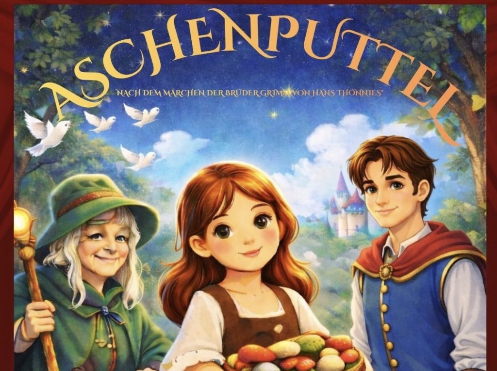 Ein Theaterstück für die ganze Familie nach dem Märchen der Brüder Grimm von Hans Thoenies*. Mit viel Humor, Musik und fantasievollen Szenen wird die bekannte Geschichte von Aschenputtel lebendig auf die Bühne gebracht. Im Mittelpunkt steht ein mutiges Mädchen, das sich trotz vieler Hindernisse nicht unterkriegen lässt. Lustige Figuren, überraschende Wendungen und liebevolle Botschaften machen das Stück zu einem besonderen Theatererlebnis für Kinder und Erwachsene gleichermaßen.