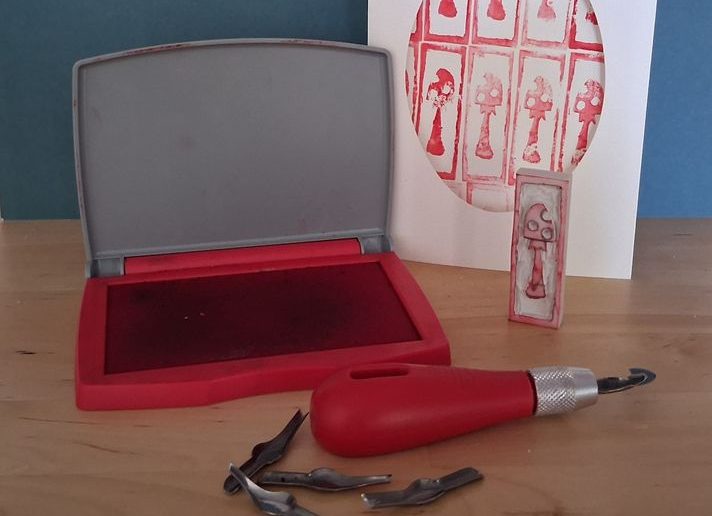 Mit Hilfe von Radiergummis, Naturmaterialien und Moosgummi entstehen kleine Kunstwerke. Jeder und jede kann mitmachen, Kleine und Große sind willkommen. Die Teilnahme ist kostenfrei. Bild: In der Stadtbücherei werden Stempel geschnitzt. |